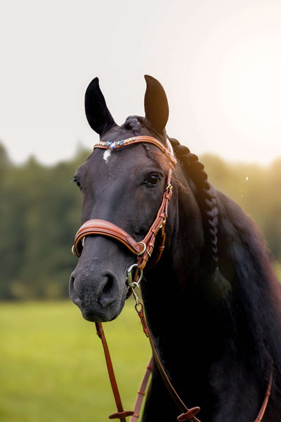 Absolutely gorgeous bridle, fits my mare beautifully and the leather is soft and comfortable. Absolutely gorgeous leatherwork, and Missy looks amazing in her bling browband. The delivery was quick to get to me here in the UK and the bridle was nicely packaged. The girls at the yard are all asking where can they get one and I have shared your website with them. I really love the bridle, thank you